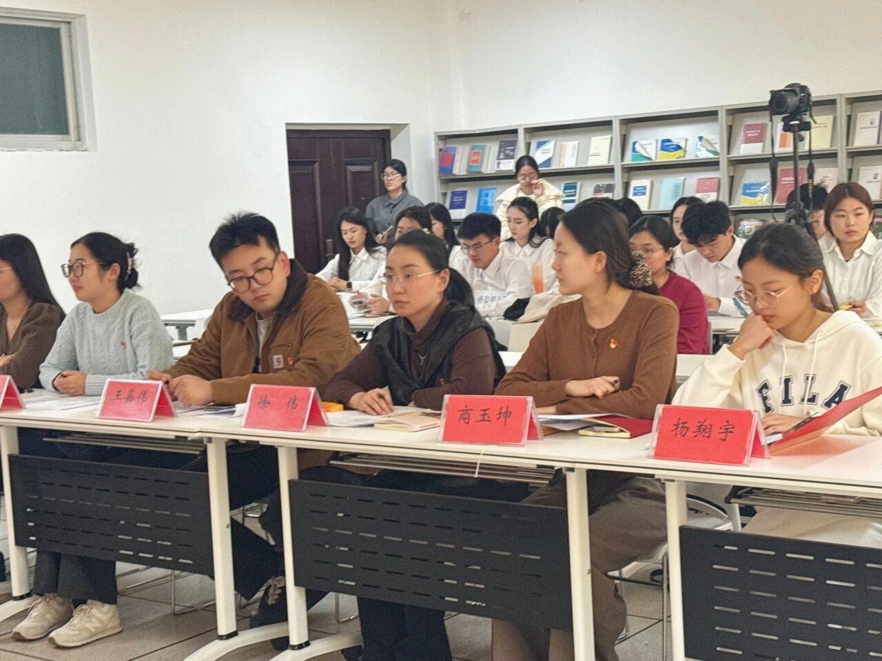 学生党支部于金家岭校区二号实验楼405会议室举办了“青春党建微剧场,信仰力量薪火传”党员培养发展流程演绎大赛。学院党委副书记徐伟、辅导员老师王嘉伟和商玉坤,出席本次活动。活动由杨翔宇主持,学生党支部副书记陈景蓉、66期党员发展对象、18期入党积极分子和党员参加。